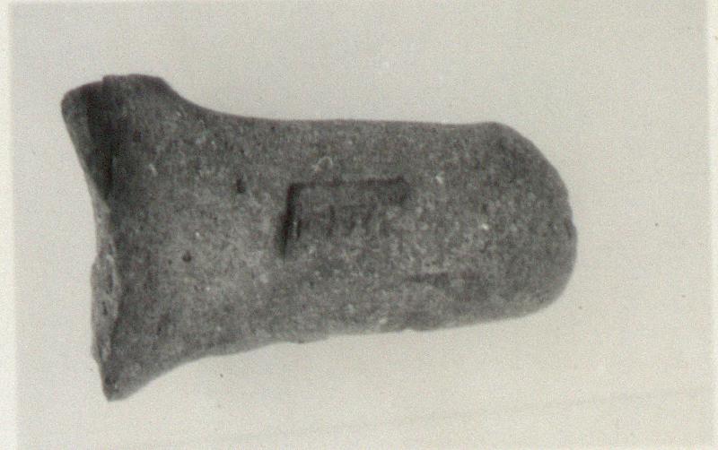 | Description: | Broad, with discerning curve. Very coarse reddish-grey clay. Impression unevenly set, but sharp. Early Knidian. | |