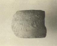 | Description: | Curve fragment. Left end of the shallow impression preserved; trident right, with handle knob. | |