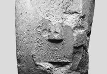 | Description: | A joining chip preserved, with part of the right end of the impression; broad handle with rather level top. Stamped slightly on the down curve; red stain. Impression incomplete and chipped to the right, rubbed off, to the left; thin-lined letters. | |