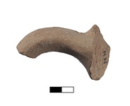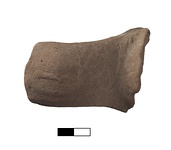 | Description: | Very worn. Faint stamp. Handle fragment with upper attachment. Rectangular stamp in relief. Parts of letters visible along both side of the field; device in the center (sword in scabbard). Micaceous brown clay. Θασίω[ν] / sword in scabbard / [-] | |