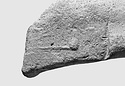 | Description: | Moderate to heavy wearing, hardly legible impression. Handle fragment. Rectangular stamp in relief, placed lengthwise on the arch, on its edge. Letters visible along the three sides of the field; device in the center of the field: a ladle. [Θα]σ[ί]ω[ν] / ladle Αἰ(-) / [Βουλὴκρι]τος | |