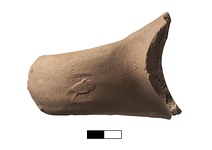 | Description: | Moderate to heavy wearing, hardly legible impression. Handle fragment and upper attachment. Rectangular stamp in relief, placed lengthwise on the arch. Letters visible along the upper side of the field; device in the center of the field: a bird. [Νικί]ας / bird / [Πα-] | |