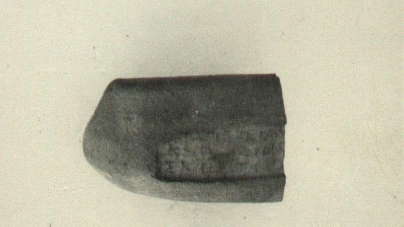 | Description: | Broad, ribbed; junction with neck not preserved. Coarse red clay, yellowing to surface; traces of light slip. Upper left part of the impression incomplete; broken away extreme right but no letters lost. Neat for Knidian. | |