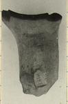 | Description: | Slightly rising; broad, ribbed, broken at curve. Coarse clay; red, grey at core; light slip. Impression incomplete above an d below; retrograde. | |