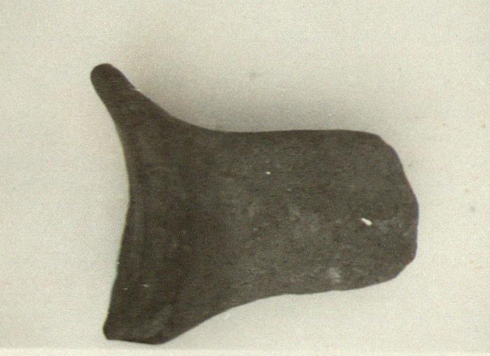 | Description: | Rising, broken before curve. Whole fragment much worn; breaks rounded. Reddish-buff clay; grey core; somewhat micaceous. Impression nearly effaced; apparently circular; remains of what seems to have been small boukranion. Cf. SS 92. | |