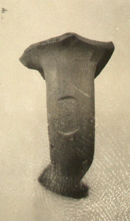 | Description: | Knidian type; rather light. Complete handle preserved, with both attachments. Coarse reddish-buff clay; greyish at core. Remains of light slip. Somewhat micaceous. Impression incomplete on two opposite sides. | |