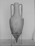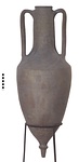 | Description: | Complete and entire save for a puncture in the side; groove ca. 0.07m. long, 0.05m. below rim; tip extends 0.05m. below ring. Shape similar to SS 3213. Capacity (corrected from 29.875 wheat, VG 1939) 30.500; Capacity (mbw) 30.880. Coarse red clay, fired pale yellow on the outside. Both handles bear the same stamp. Cf. Dumont (1872), p. 179, no. 229. | |