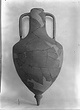 | Description: | Fragmentary amphora with most of one handle; handle broad, descends from upper attachment; preserved almost to lower attachment. Whole jar, "tip extends ca 0.055 below [...], but this merges; into tip with a taper; groove 0.083m. below rim"(VG). Capacity (revised from wheat VG 1939) 39.700. Rather coarse red clay with gray core; slightly micaceous. Impression partly incomplete and much worn. | |