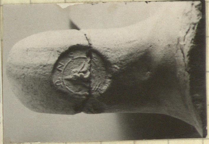 | Description: | The neck and one handle nearly complete. Red stain on neck. Stamps on both handles. | |