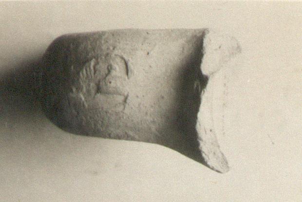 | Description: | Thick handle curving down close to neck. Coarse clay, somewhat micaceous, full of large quartzy bits; pinkish-buff to ash gray. Impression square with rounded corners. Appears to be the prow of a ship, with letter traces on two adjacent sides of it. Cf. Pridik (1917), pp. 116-117, no. 16, pl. XIV; the type is called "Cretan"; there after the suggestion of Milne in the Cairo museum publication. | |