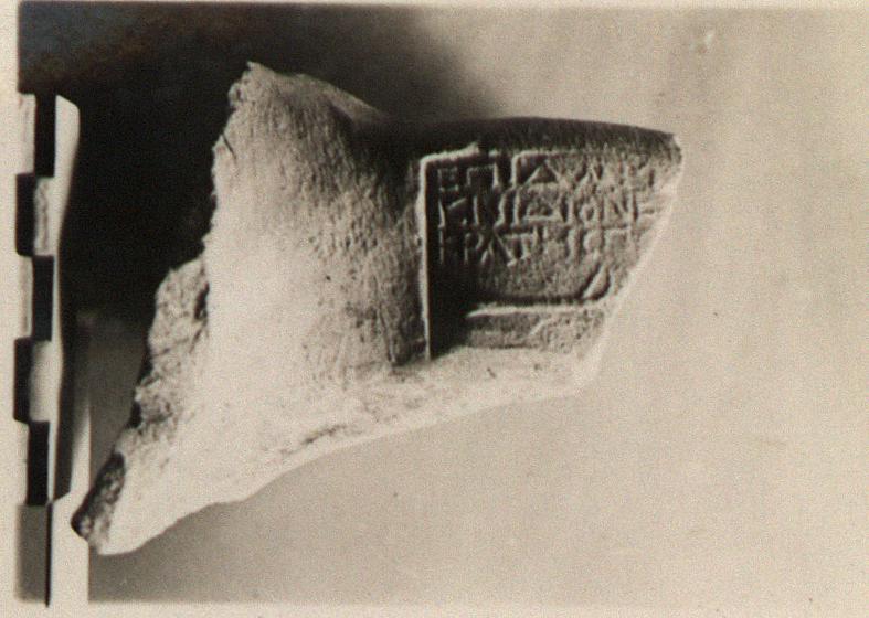 | Writing: | Ἐπὶ Δαμο̣[κρίτο] Κνίδιον Ἑ[λικω-υ] Κράτης Πο[νοσυ] palm λέτ<η>ς (Ν for Η) tree (Σ lunate, Ω cursive) | |