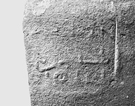 | Description: | Very thin flat handle. Coarse brownish-red clay, slightly micaceous; unglazed. Device; inverted. | |
