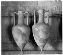 | Description: | Complete neck of amphora and rim with part of shoulder, and both handles;mended largely complete, restored in plaster; no groove, rather flat topped underarm and rim for period. Capacity: (revised from wheat VG 1939 of 23.900) 24.400. Rose. | |