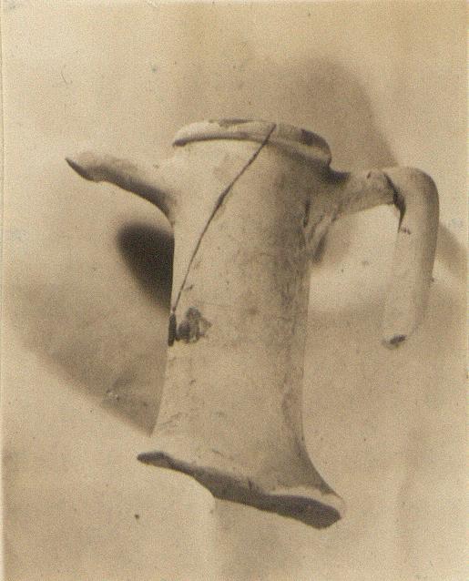 | Description: | Neck of amphora and rim with part of shoulder and both handles; missing lower part of handle; mended largely, restored in plaster; groove on neck 0.125m. below rim nearly all round; peg foot; blotch of rusted metal on side of neck. Capacity: (revised from wheat VG 1939 of 25.700) 26.200. | |