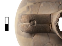 Fractional Rhodian amphora; substantially preserved to just below shoulder; thin cylindrical neck with narrow rolled l;ip; double handles made of two separate rolls of clay, gentled arched. Gradual slope from neck to shoulder.