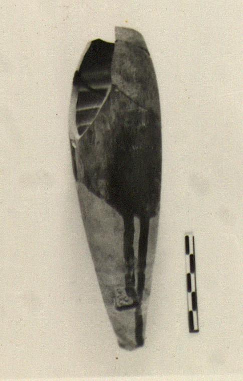 Description:   Top missing; body slender tapering down to small flat bottom.