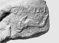 | Description: | Rectangular stamp; large dolphin to left; semi-oblitearted letters below; above: “ΘΑΣΙΩ”. | |