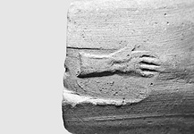| Description: | Traces of red at junction of handle and neck (fourth century B.C.?). Rectangular stamp; hand and forearm with letters above. Early(?) Thasian. Cf. Pridik (1917), p. 51, no. 338. | |