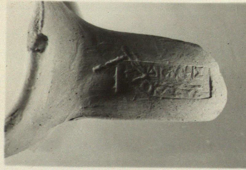 | Description: | Part of rim preserved. Rectangular stamp; two lines. | |