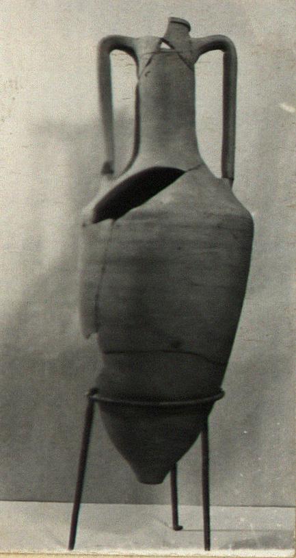 | Description: | Long rim fragment; completed by the addition of a whole amphora. The rest of amphora from fill behind well-tiles, whole belongs to packing, not well-fill. Capacity: (poly 5.vi.78) 31.880. Rectangular stamp, only lower edge struck; three lines. Other handle unstamped. | |