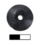 | Description: | Intact, slightly chipped at base but very well preserved. Surface slightly scratched. Truncated conical shape; flattened bottom and top. Pierced through center. Smooth dark blue-black stone, probable steatite. Mycenaean. Cf. Agora XIII, pl. 77, no. XXIII-10 (ST 595). | |