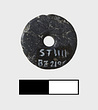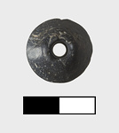 Truncated, conical shape. Flat underside; rounded top. Single vertical piercing through center. Wear marks on sides.