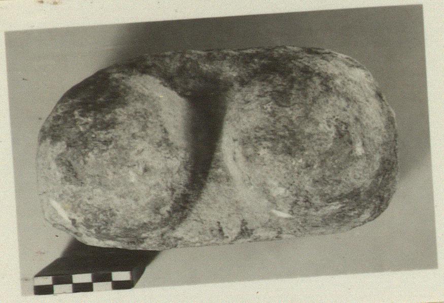 | Description: | Mastoid weight. Two half-spheres on a flat surface. Traces of a handle broken off between. Pentelic marble. | |