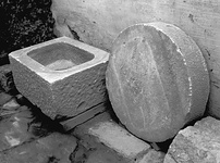 | Description: | A block of marble, rough hewn on the sides, smoothed with a claw (?) on top. The interior has been hollowed in a rectangle 0.635x0.42m., rounded at the corners 0.23m. deep, deepening toward center. Inside surface is covered with marks of a sharp point. Lid looks like a millstone. It is a disc, rough hewn around edge and smoothed on the visible broad surface with the same claw (?) used on top of the sarcophagos. Pentelic marble. | |