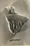 Flat bottom; spout of which channelling has just been begun; voluted decoration on outside below spout; inside roughly hollowed, unfinished.