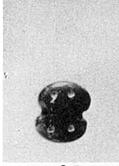 In shape of Minoan shield. Pierced horizontally, with boss on upper surface and four regular circular depressions on under side.