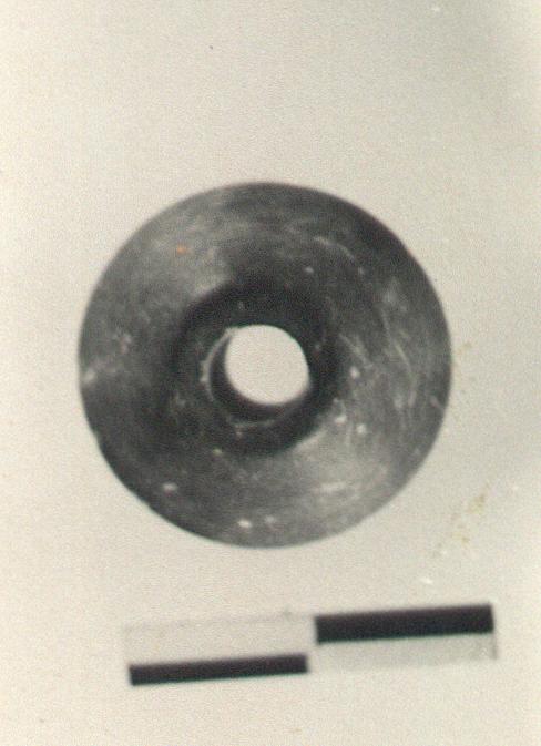 | Description: | Intact; in excellent condition. Double conical shape, sharp median ridge. Clear horizontal polishing marks. Smooth soapy surface. Steatite. | |
