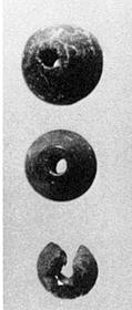 | Description: | Intact; in excellent condition. Double conical shape, sharp median ridge. Clear horizontal polishing marks. Smooth soapy surface. Steatite. | |