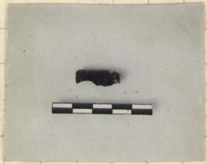 | Description: | Part of a two-edged blade, flat on one side, ridged on other. Both ends broken off. | |