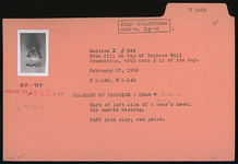 | Description: | First interpretation: bear 's head. Part of left side of dog 's head; the muzzle missing. Red paint. Buff pink clay. Cf. T 1510. | |