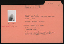 | Description: | Broken away at neck. Otherwise intact. Head with high headdress, decorated with herringbone pattern. ADDENDA: Same mold as T 819 and T 1532. | |