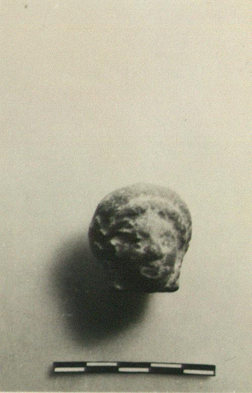 | Description: | A woman 's head wearing a thick wreath. Small hole from below. Red clay. | |