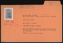 | Description: | Part of woman 's head with long flowing hair. The edge of the mold preserved at the back on one side. Traces of red paint on the face. | |