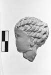 | Description: | Broken off at the neck, the features battered. An oval face, with curly hair drawn back in melon waves to a large flat knot. Earrings. No trace of color. Pinkish buff clay. Cf. Hesperia 21 (1952), p. 138, n. 98. | |