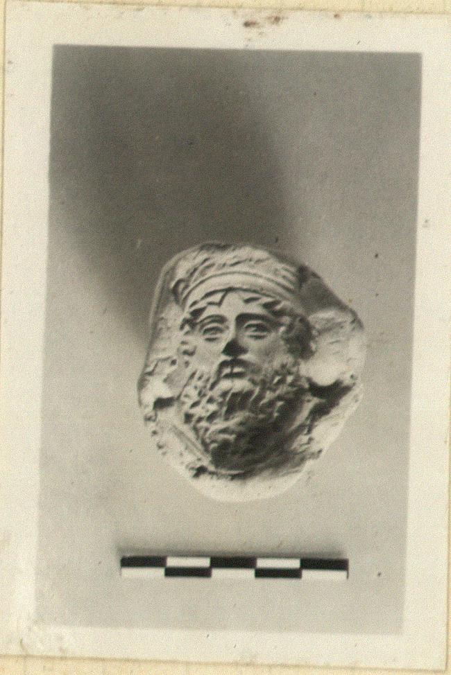 | Description: | Intact. Mold for a bearded male mask. Fine buff clay. | |