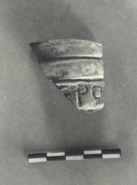 | Description: | Broken all around. Inscribed base divided into horizontal grooves and ridges. Inscription scratched on bottom one, in the damp clay: E P O. White slip, yellow and pink paint. Red clay. ADDENDA: inscription: Γ Ε Ρ Ο Ν Τ Ι C Cf. T 1222. <graphic> | |