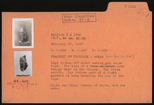 | Description: | The legs of Pan with shaggy hair on the thighs. Legs broken off above ankles and below hips. The bottom part of a light garment is seen covering the top of the legs. The shins smooth. Traces of white paint, and red over. Light red clay. | |
