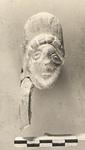 | Description: | Head with extremely high headdress. Gouged style. Remains of white paint. Late Roman. ADDENDA: Same mold as T 3289. | |