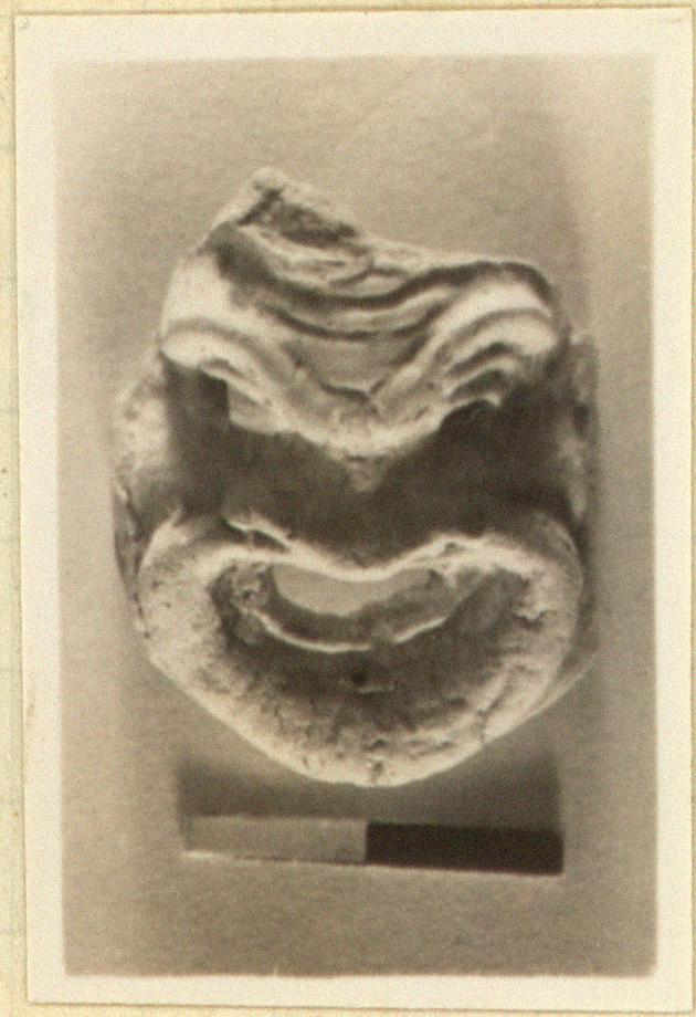 | Description: | Comic mask. Pierced eyes and mouth. Traces of white slip. Buff clay. | |