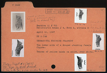 | Description: | The lower side of a figure. Traces of yellow bands on skirt, over white. | |