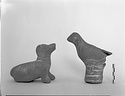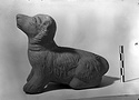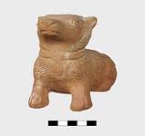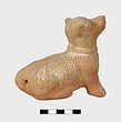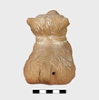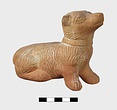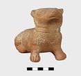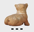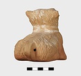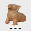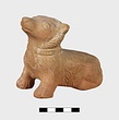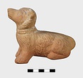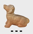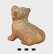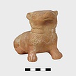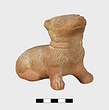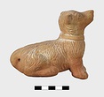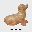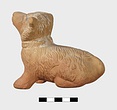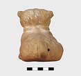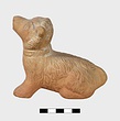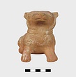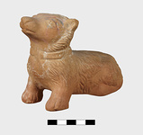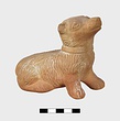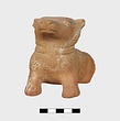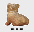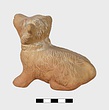 | Description: | Sitting dog, wearing a collar. Hole at back. Pellet inside. Traces of white on body and pink on eyebrows. Cf. G. Roux, title yet unknown, since book still in press, section Les Romains, p. 6. | |