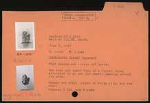 | Description: | Flat behind and broken off. The head and upper body of a figure being strangled by an arm (or snake) passing around its neck. Traces of white slip and red over. Orange red clay. Cf. T 552. | |