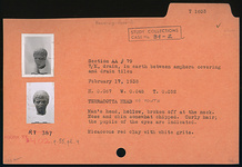 | Description: | Broken off at the neck. Nose and chin somewhat chipped. Curly hair; the pupils of the eyes are indicated. Hollow. Micaceous red clay with white grits. | |