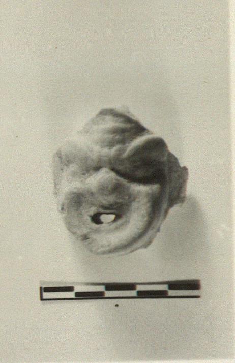 | Description: | Grotesque mask with button nose and large pierced mouth. Broken at top, bottom and right. Traces of red color on face. Yellow brown clay. | |