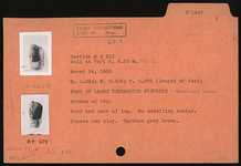 | Description: | Foot and part of leg of large figurine. No modelling behind. Coarse red clay. Surface gray brown. | |