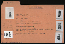 | Description: | Head and feet missing. Partly draped figure, wearing an himation. Traces of white color. Pinkish brown clay. Cf. T 4104. ADDENDA: Female (?) figure holding phiale (?). | |